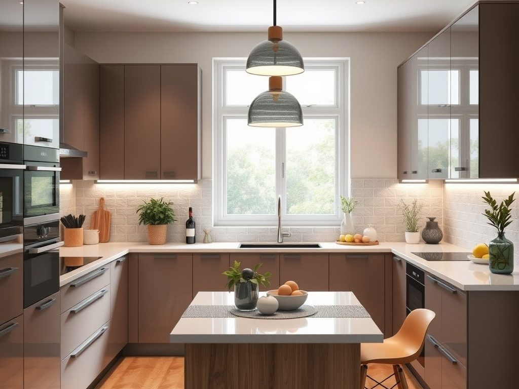 Przeanalizuj także oświetlenie kuchni — istotne jest, aby było ono warstwowe i odpowiednio rozmieszczone. Zadbaj o komfort użytkowania, wybierając różne źródła światła, które podkreślają estetykę i zapewniają funkcjonalność w przestrzeni roboczej.